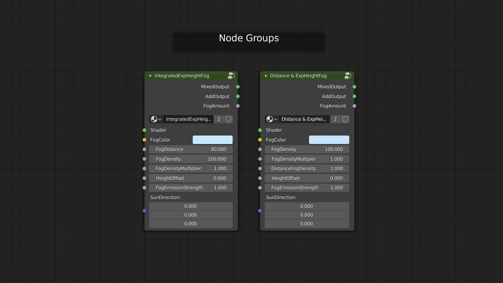 - Additional node group for non-integrated height fog, with distance fog
